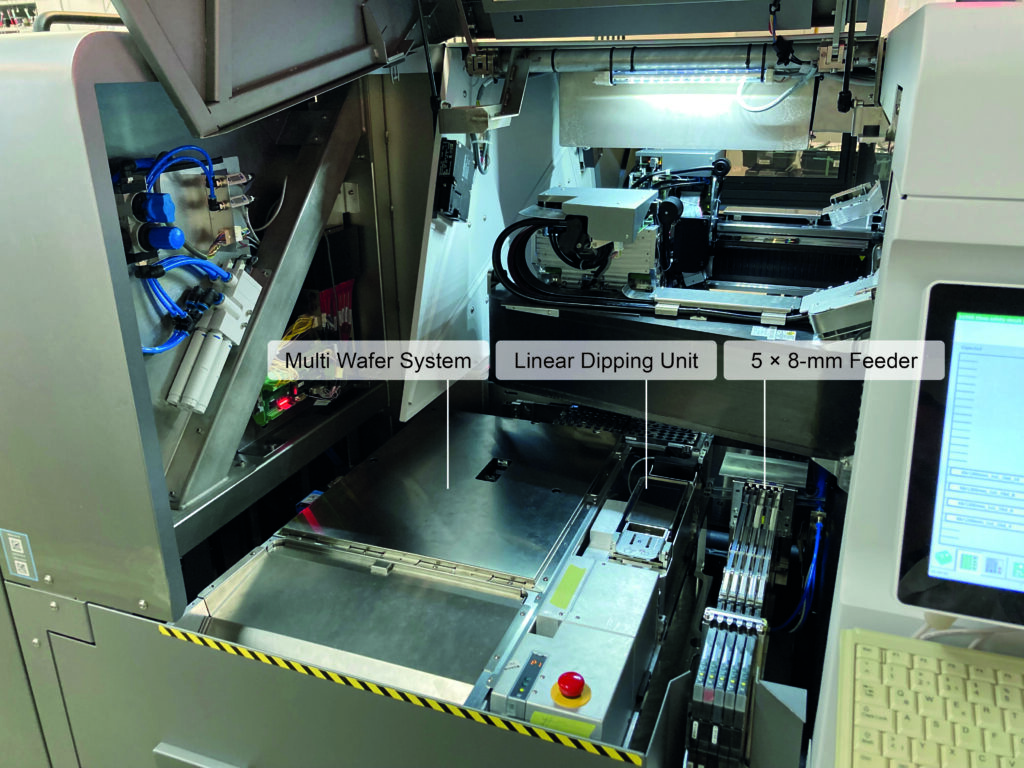 以前,SMT元器件和芯片組合處理的主要障礙之一是直接從晶圓上取出芯片,這一過(guò)程比較緩慢。在切割好的晶圓上,芯片被固定在一個(gè)載體薄膜上,組裝之前須先將其剝離——這一過(guò)程幾乎不可能加速。